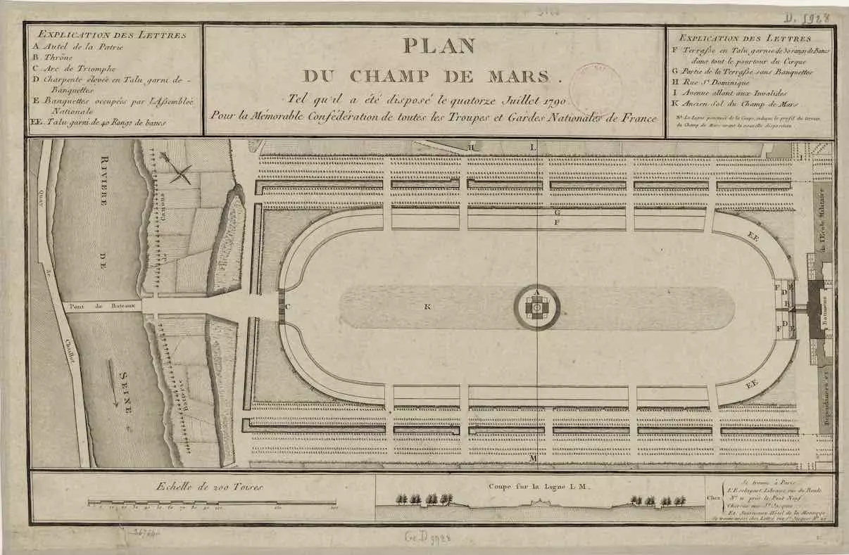 La Fayette, à la tête de la garde nationale, arrive dans l’après-midi sur le Champ-de-Mars. Il est copieusement insulté. Quelques jets de pierre finissent sur ses hommes, mais le commandant de la garde nationale garde son sang froid. Il fait néanmoins avancer ses troupes sur l’esplanade et met deux canons en batterie. La journée a malgré tout un caractère “débonnaire” (M. Ozouf), abstraction faite des deux morts de la matinée. On pique-nique, on chante, on veut même danser mais on se l’interdit, du fait des meurtres. Cependant, le maire de Paris, Bailly, est sous pression des députés, sécoués par la mort des deux voyeurs. La veille, l’Assemblée avait convoqué le directoire du département de Paris et la municipalité :